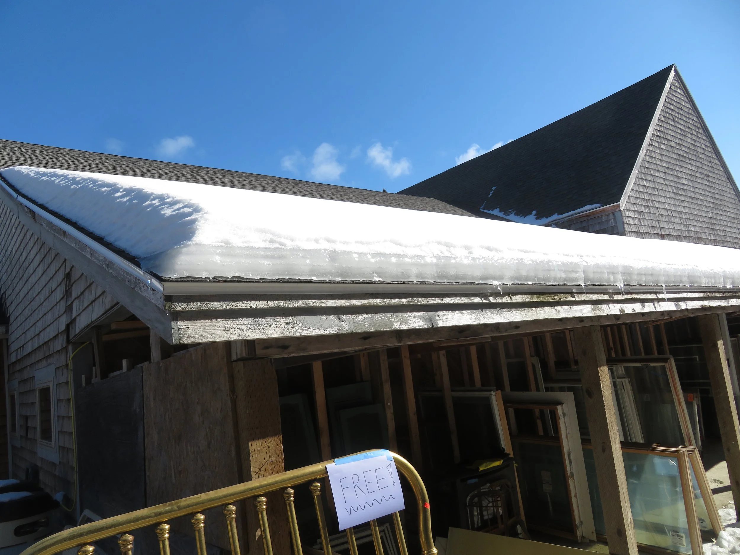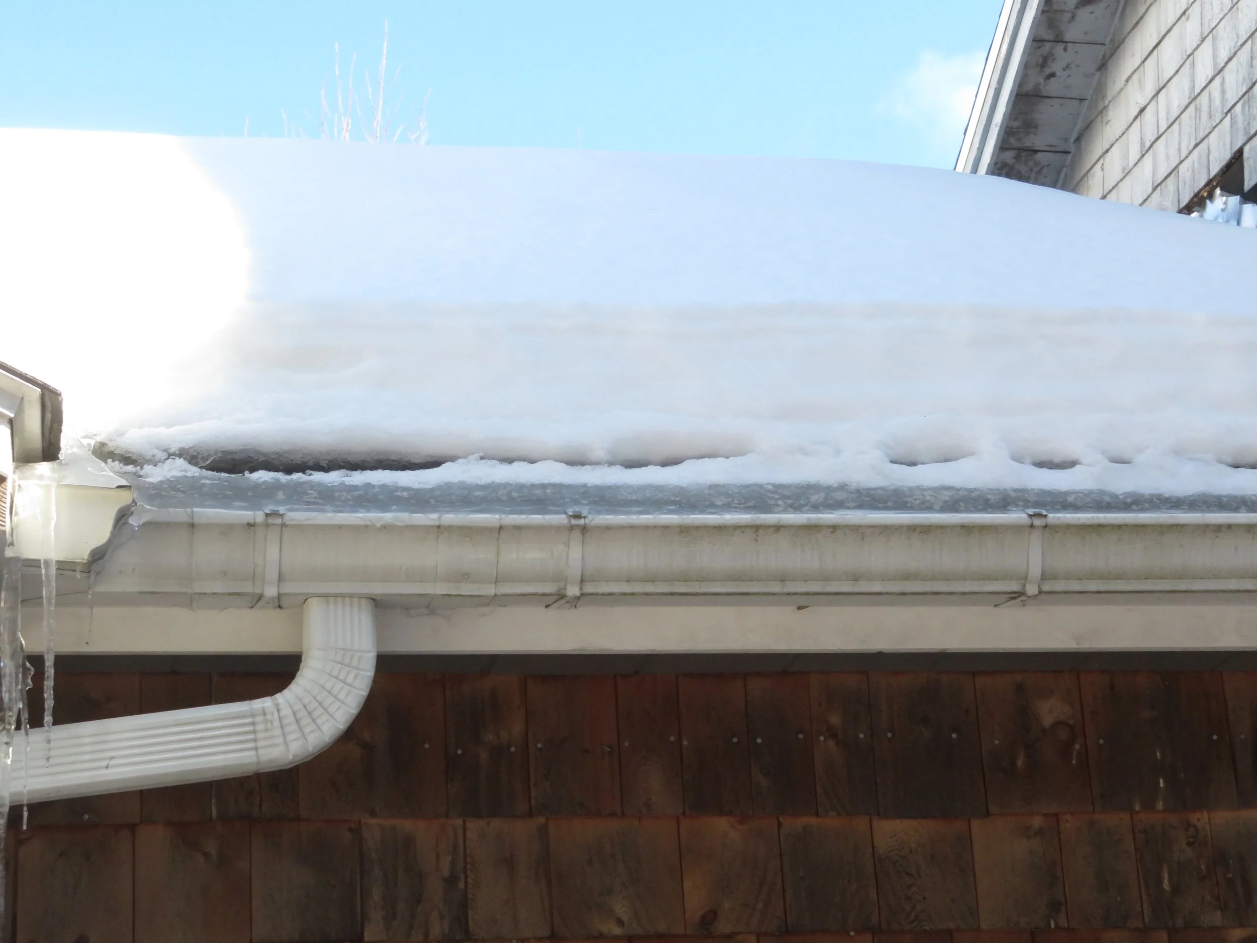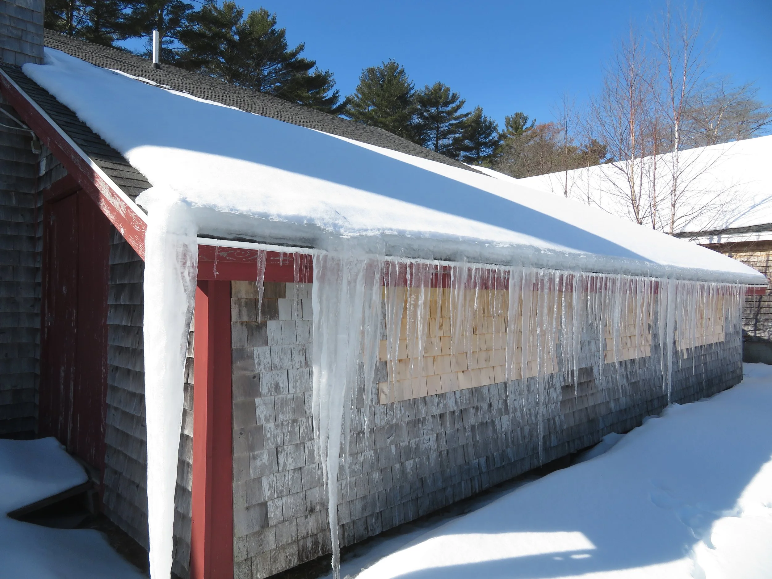 Thick ice ridges along the eaves.